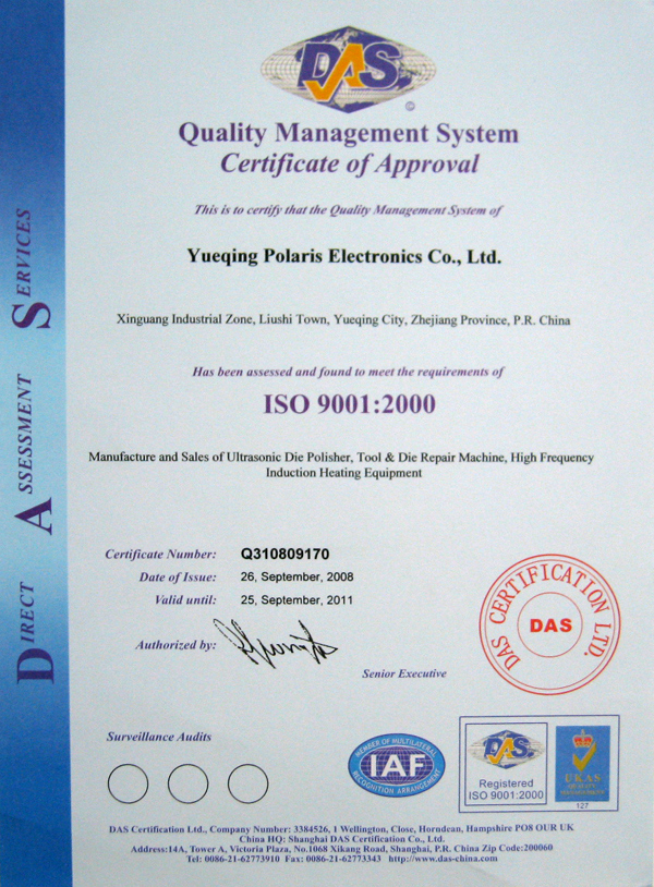 Congratulations to the Company successfully passed the the Chinese ISO 9001:2000 quality management system
